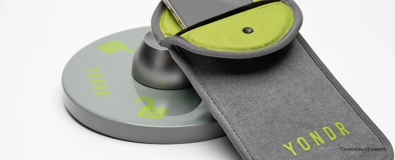 Inaccessible device storage. Phones, smart watches, and other personal electronic devices go in locked pouches or phone lockers.